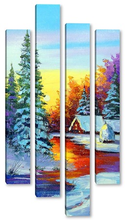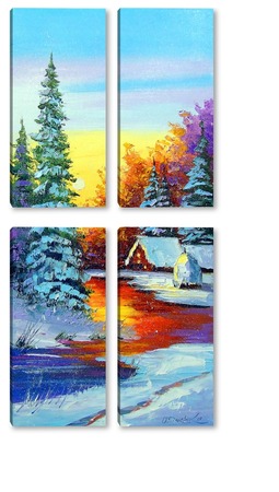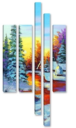 Купить модульную картину Зимний рассвет