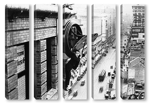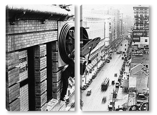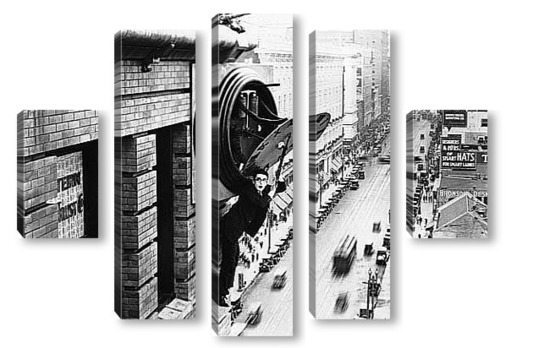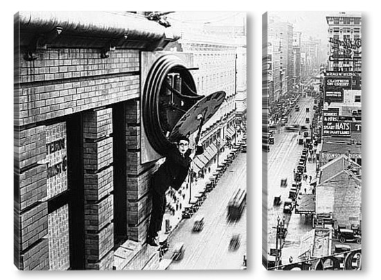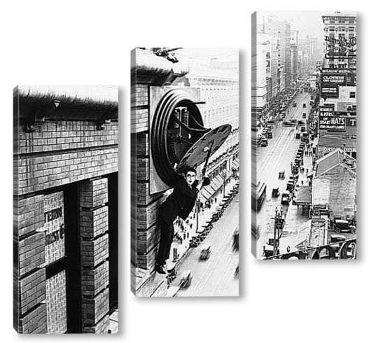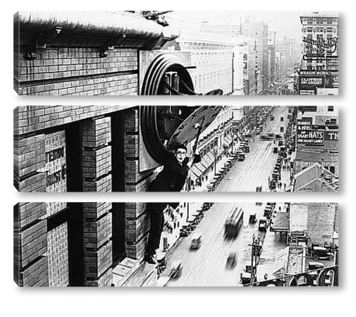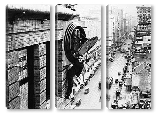Купить модульную картину Гаролд Ллойд висящий на циферблате