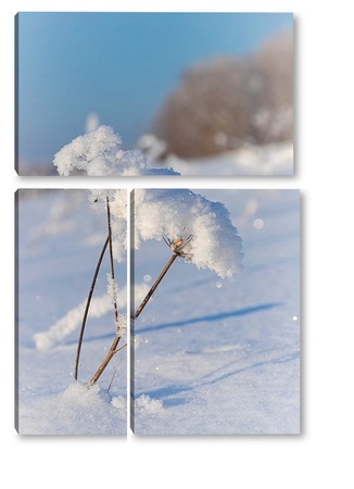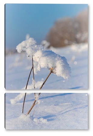 Купить модульную картину Соцветие борщевика с хлопьями снега