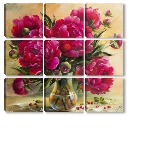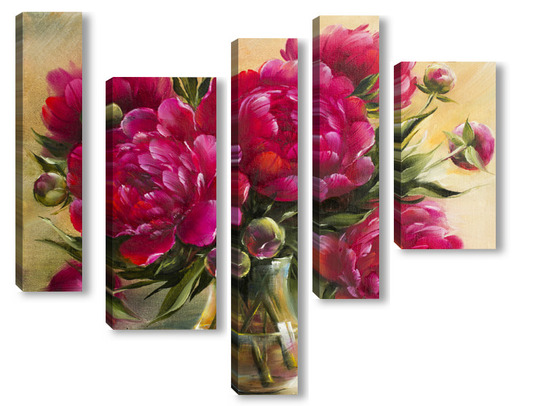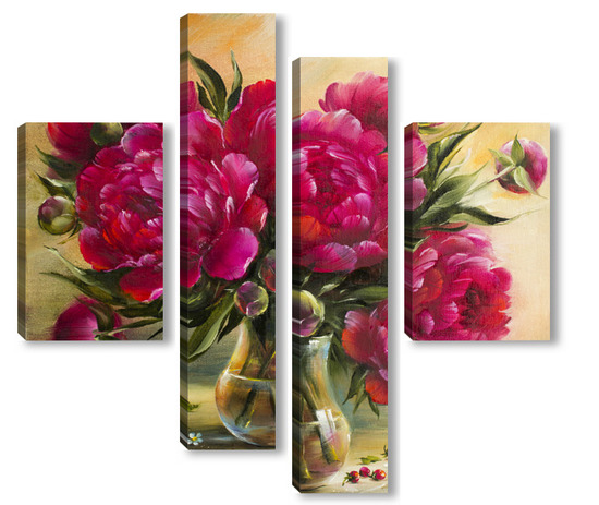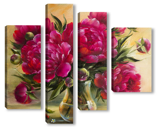 Купить модульную картину Бордовые пионы в вазе