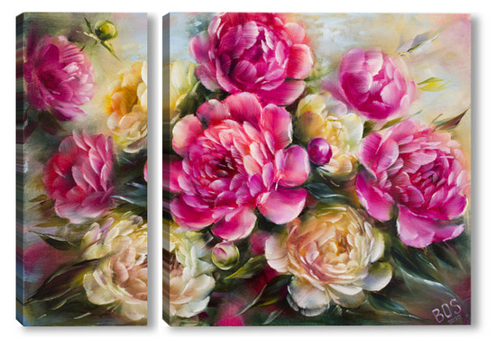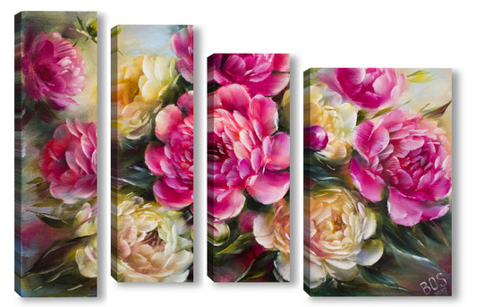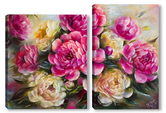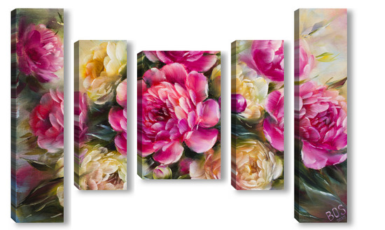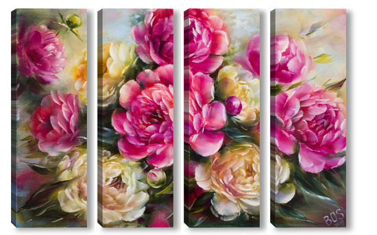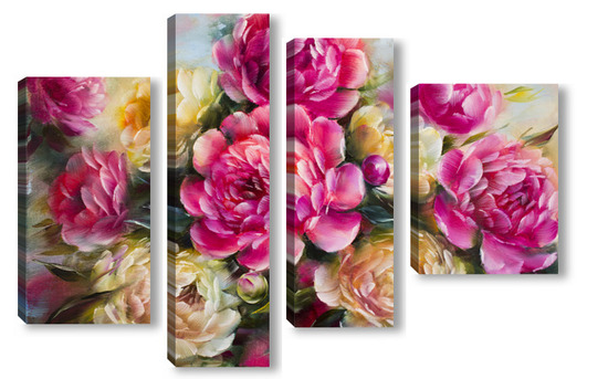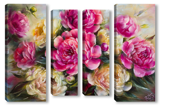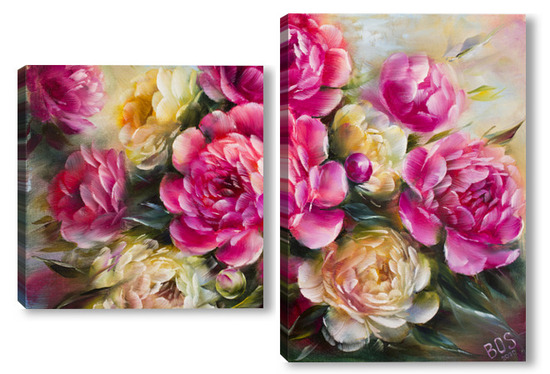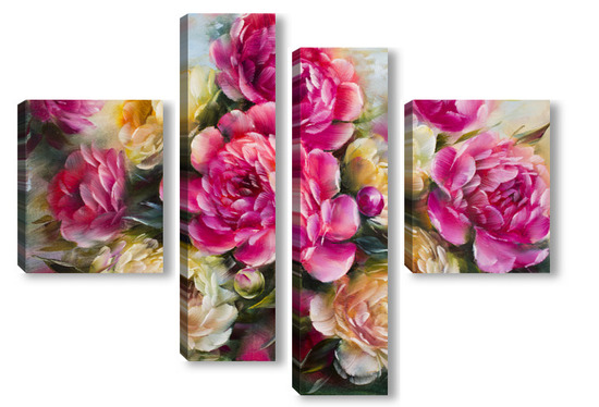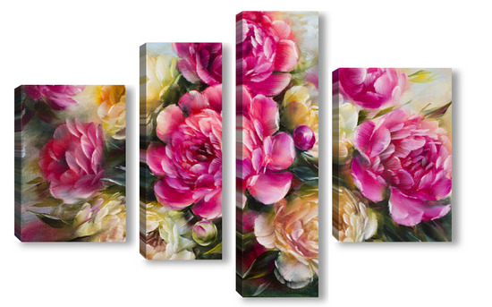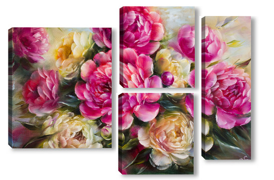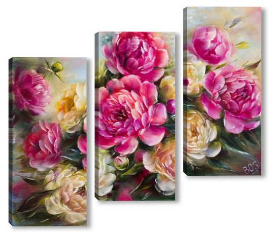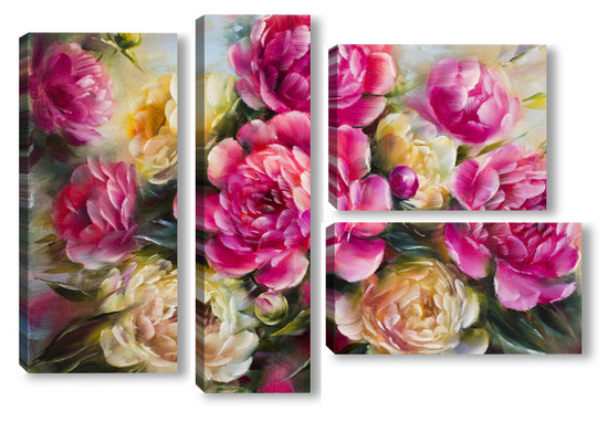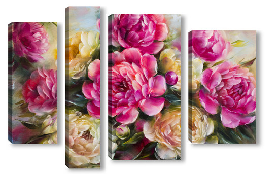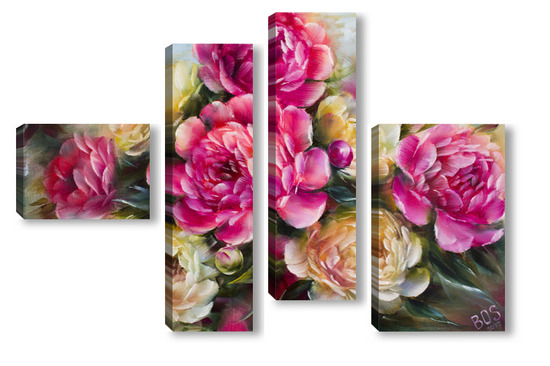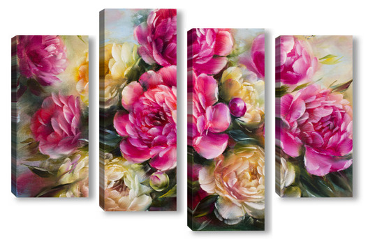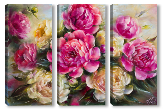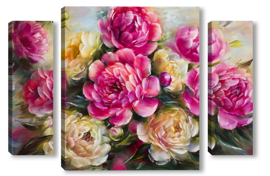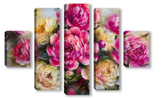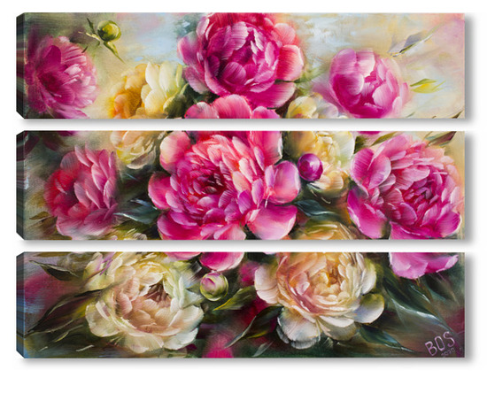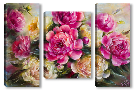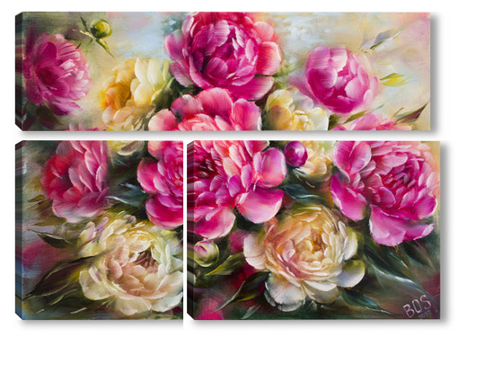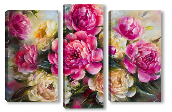 Купить модульную картину Розовые и белые пионы в лучах солнца
