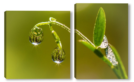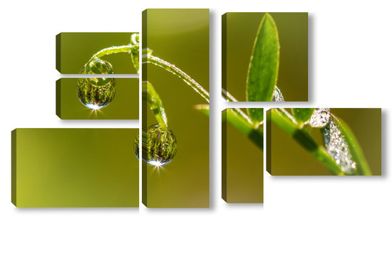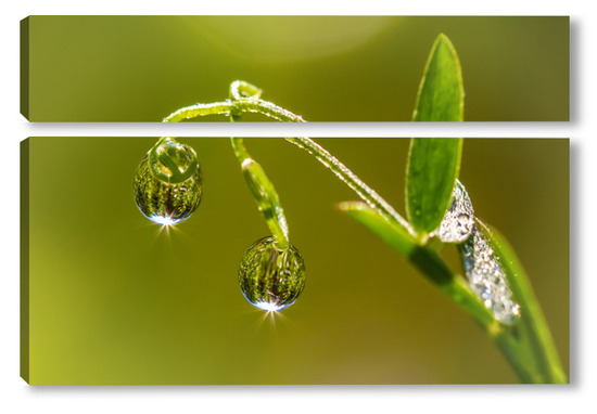 Купить модульную картину утренняя роса на стебле растения