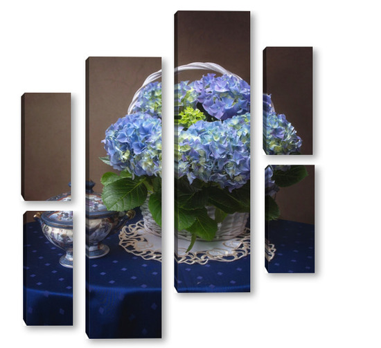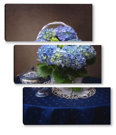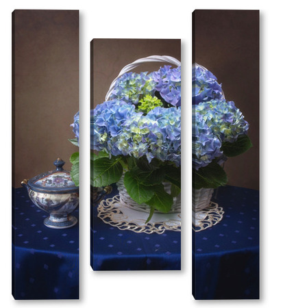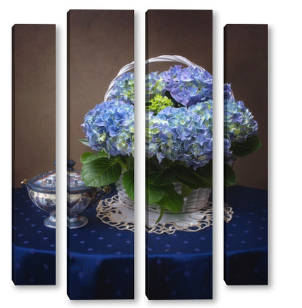 Купить модульную картину Натюрморт с голубой гортензией