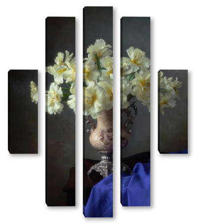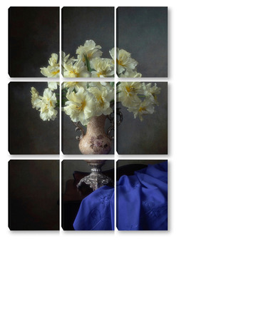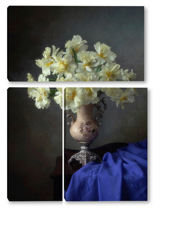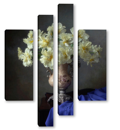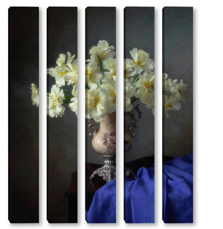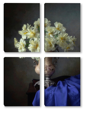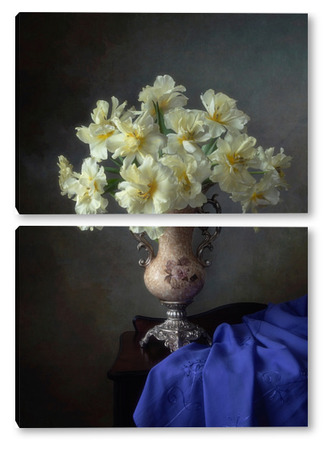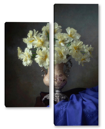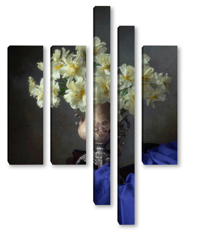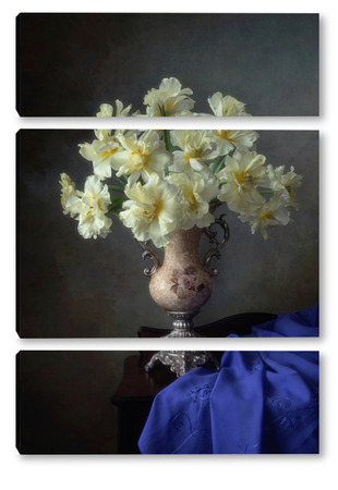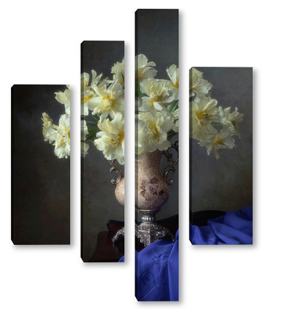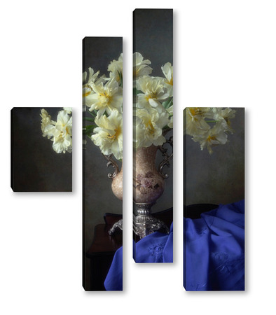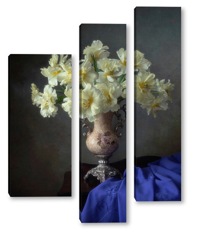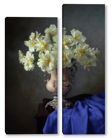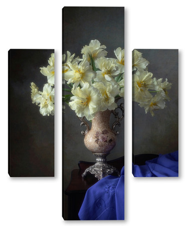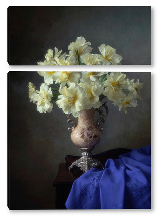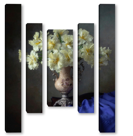 Купить модульную картину Натюрморт с букетом желтых тюльпанов