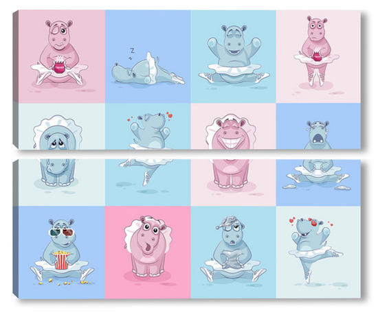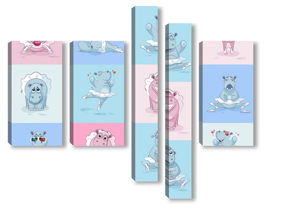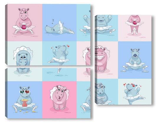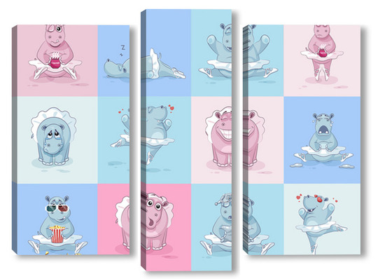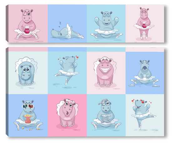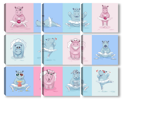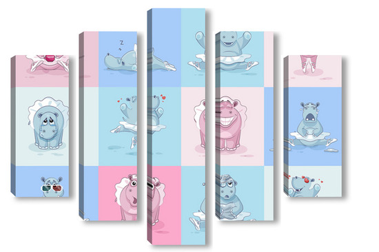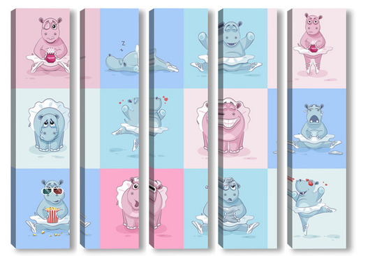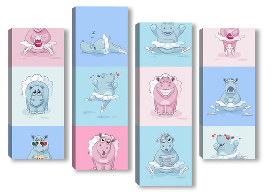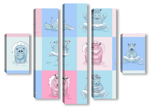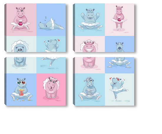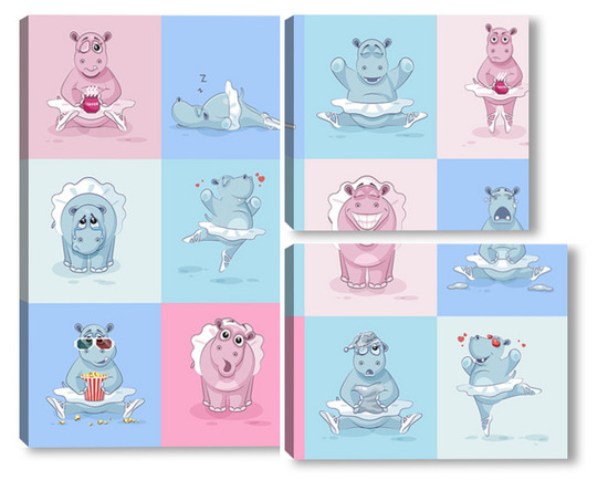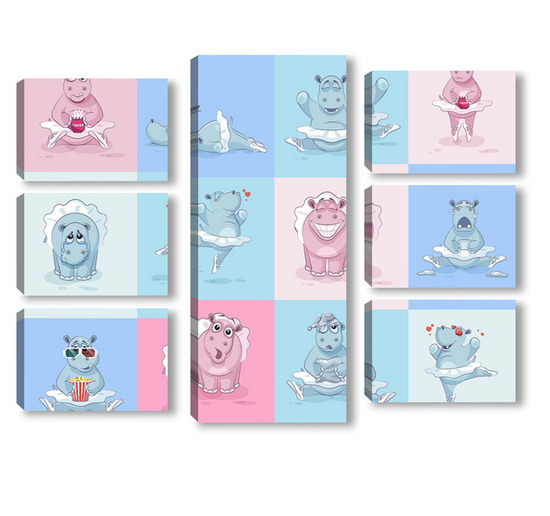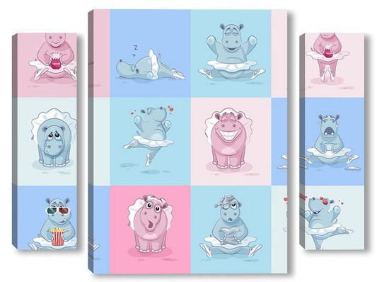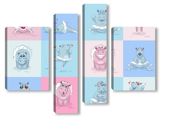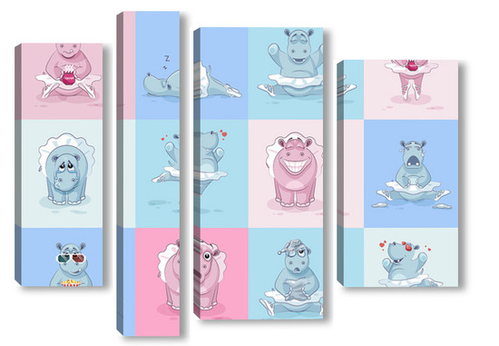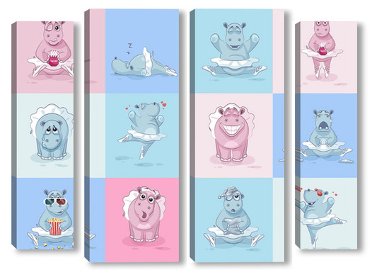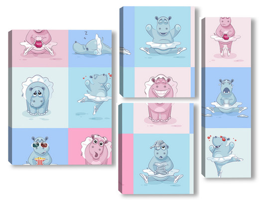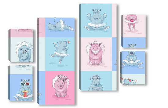 Купить модульную картину Бегемотики
