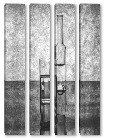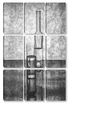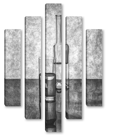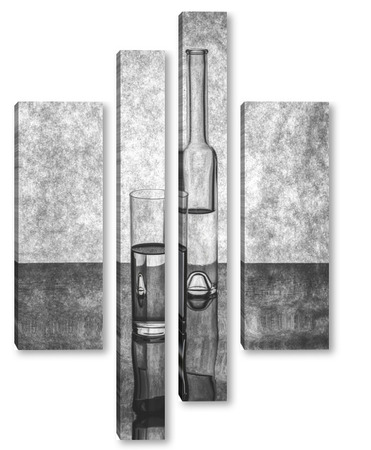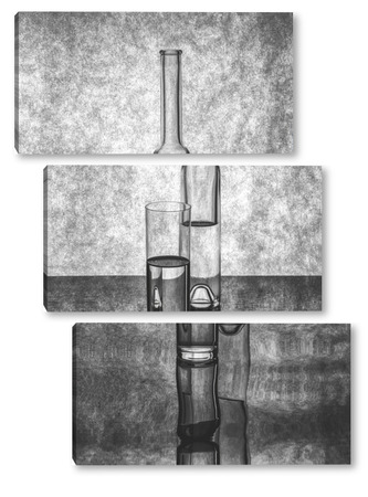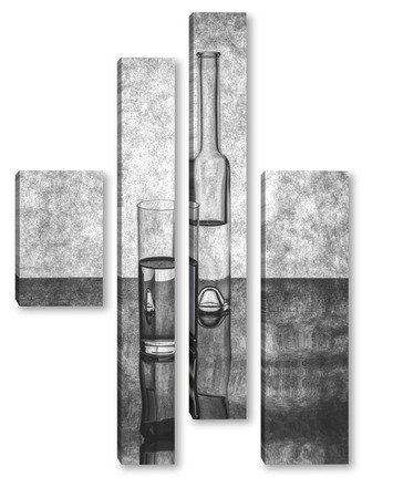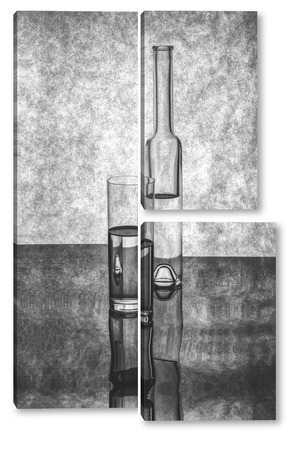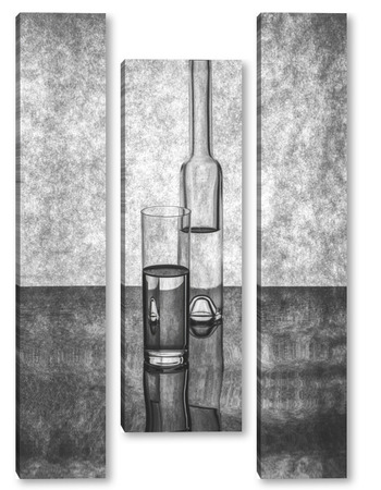 Купить модульную картину Черно-белый натюрморт с бутылками
