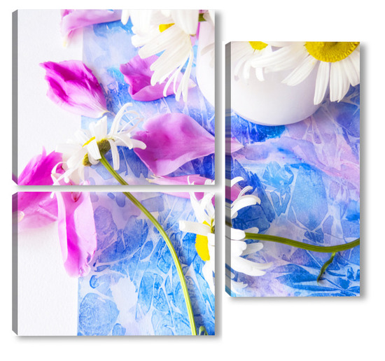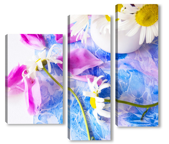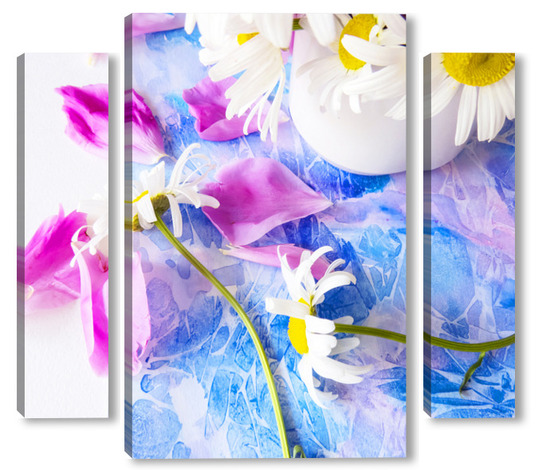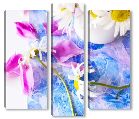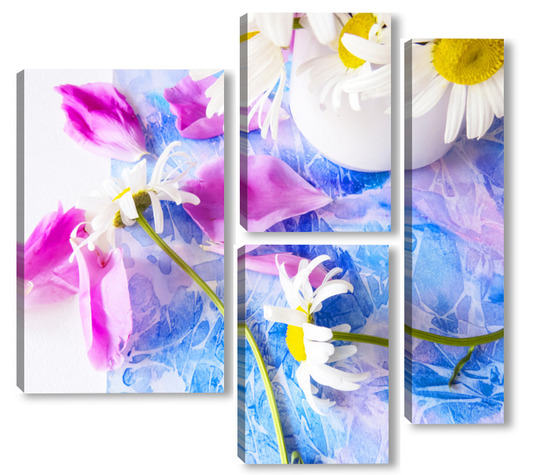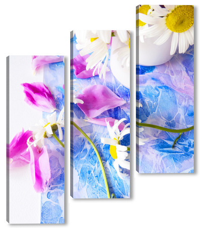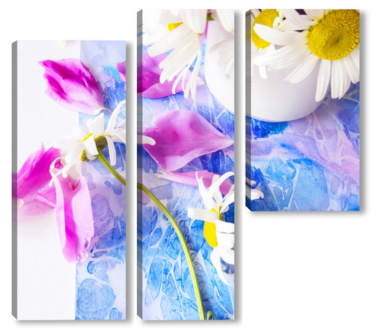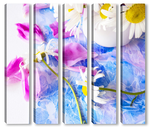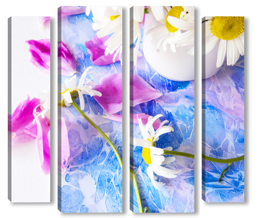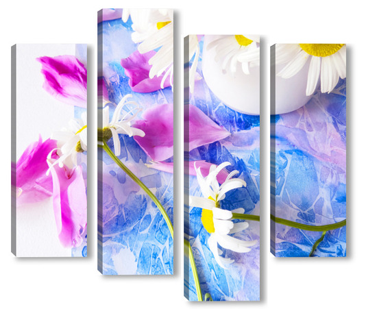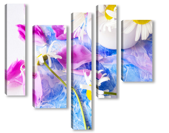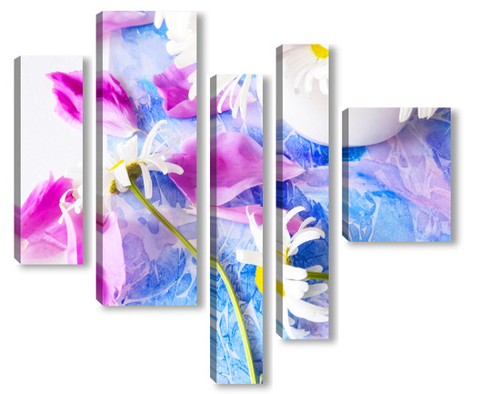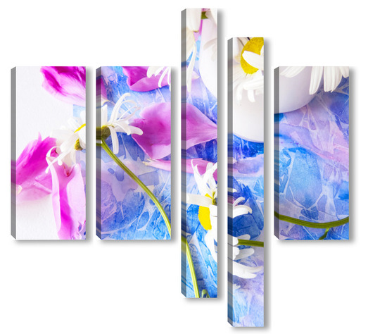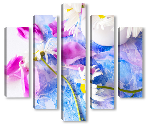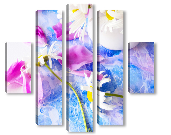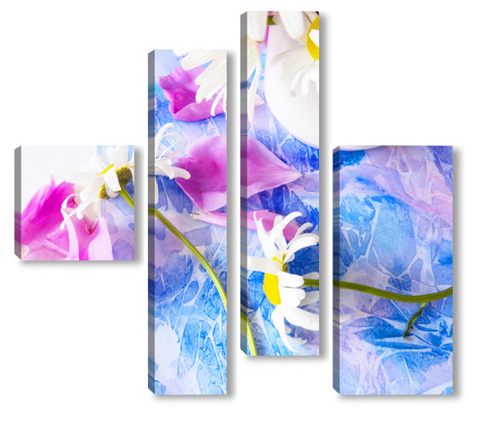 Купить модульную картину Цветы и голубая акварельная фантазия 1