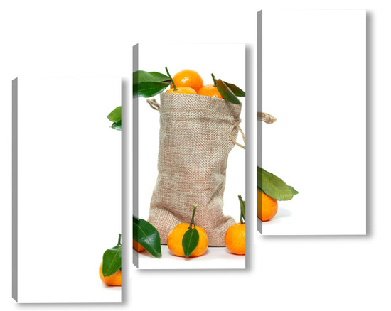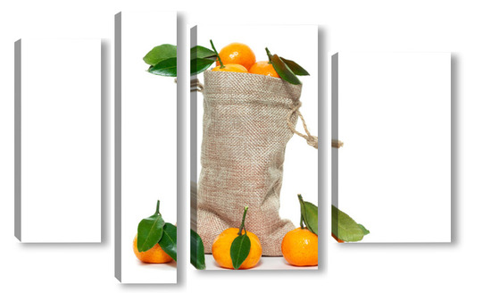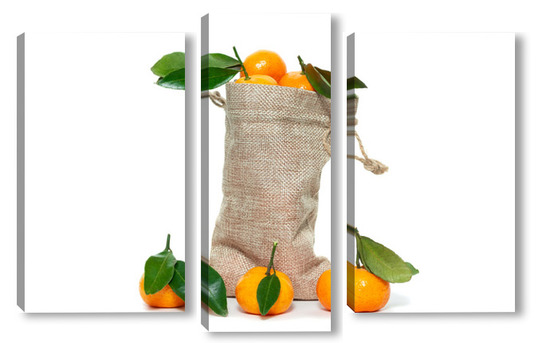 Купить модульную картину Стопка мандаринов с изолированными листьями на белом фоне
