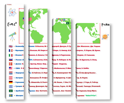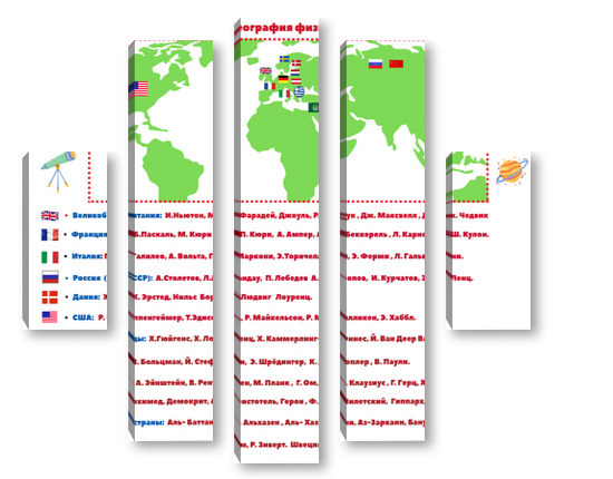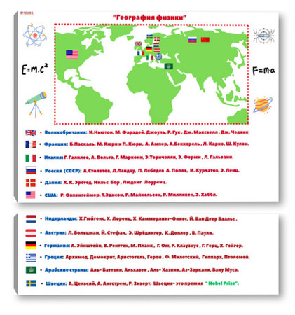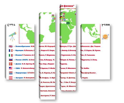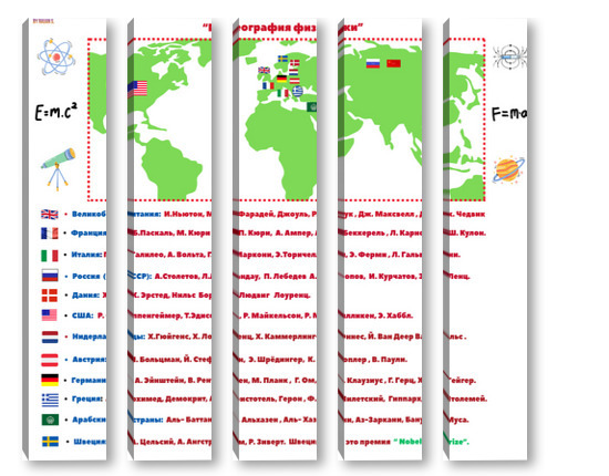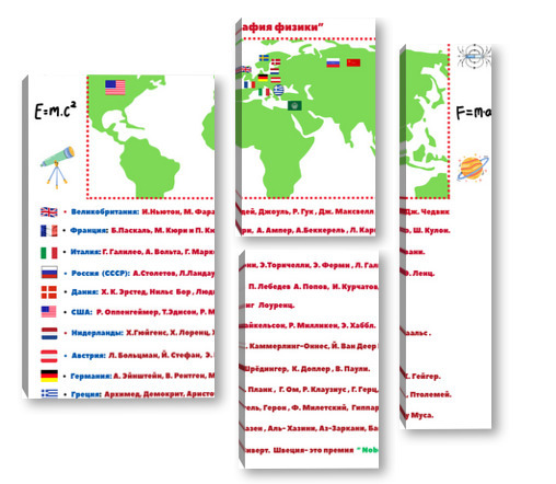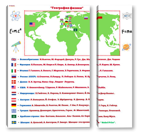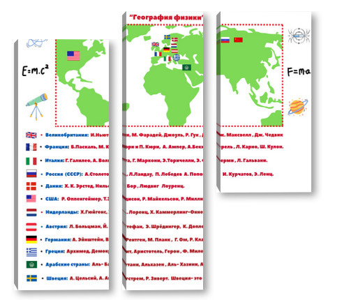 Купить модульную картину Плакат для кабинета физики " География ученых-физиков"