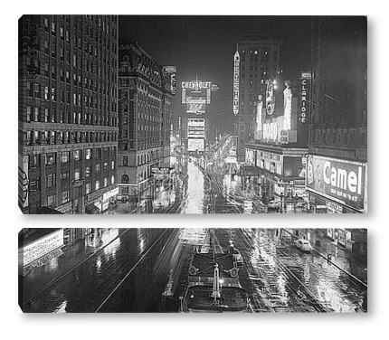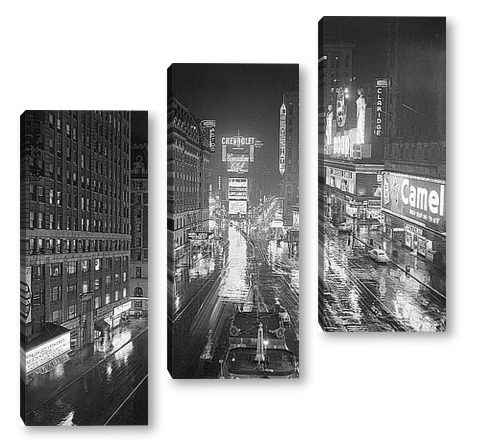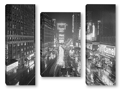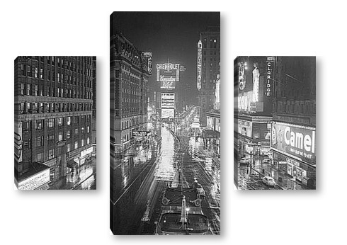 Купить модульную картину Таймс Сквер в дождливую ночь.Май 1952г.