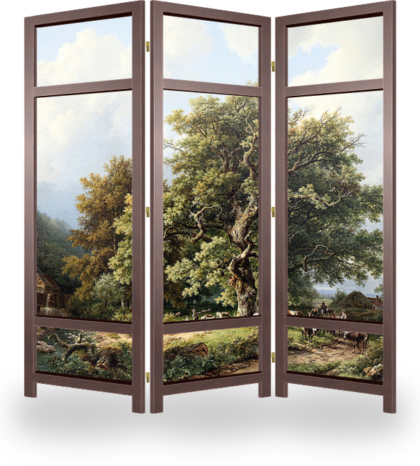Ширма эконом отлично подойдет для временного размещения, рекламы, для отгораживания объектов интерьера и его дополнения. Лицевая сторона с изображением, обратная сторона открытый каркас