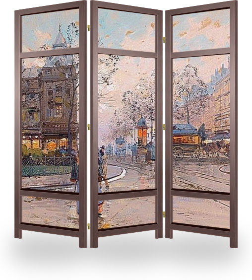 Ширма эконом отлично подойдет для временного размещения, рекламы, для отгораживания объектов интерьера и его дополнения. Лицевая сторона с изображением, обратная сторона открытый каркас