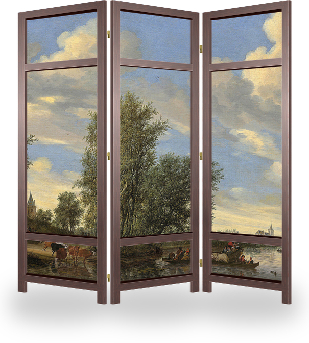 Ширма "Речной пейзаж с паромом"