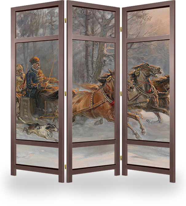 Ширма эконом отлично подойдет для временного размещения, рекламы, для отгораживания объектов интерьера и его дополнения. Лицевая сторона с изображением, обратная сторона открытый каркас