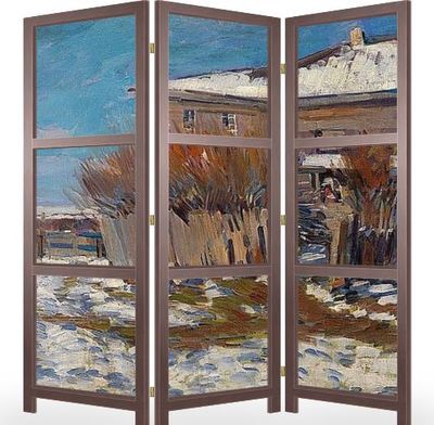 Ширма эконом отлично подойдет для временного размещения, рекламы, для отгораживания объектов интерьера и его дополнения. Лицевая сторона с изображением, обратная сторона открытый каркас