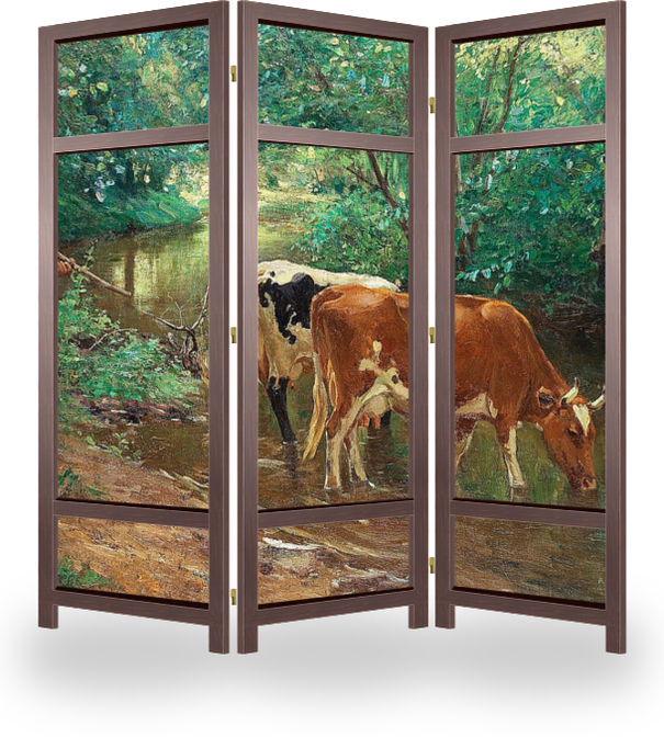 Ширма эконом отлично подойдет для временного размещения, рекламы, для отгораживания объектов интерьера и его дополнения. Лицевая сторона с изображением, обратная сторона открытый каркас