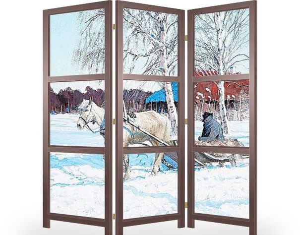 Ширма эконом отлично подойдет для временного размещения, рекламы, для отгораживания объектов интерьера и его дополнения. Лицевая сторона с изображением, обратная сторона открытый каркас