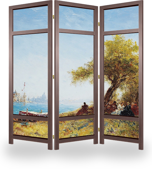 Ширма эконом отлично подойдет для временного размещения, рекламы, для отгораживания объектов интерьера и его дополнения. Лицевая сторона с изображением, обратная сторона открытый каркас