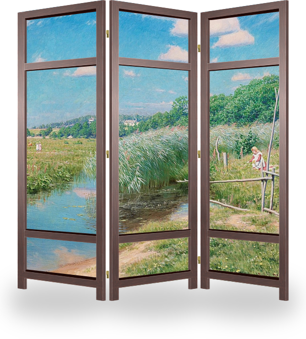 Ширма эконом отлично подойдет для временного размещения, рекламы, для отгораживания объектов интерьера и его дополнения. Лицевая сторона с изображением, обратная сторона открытый каркас