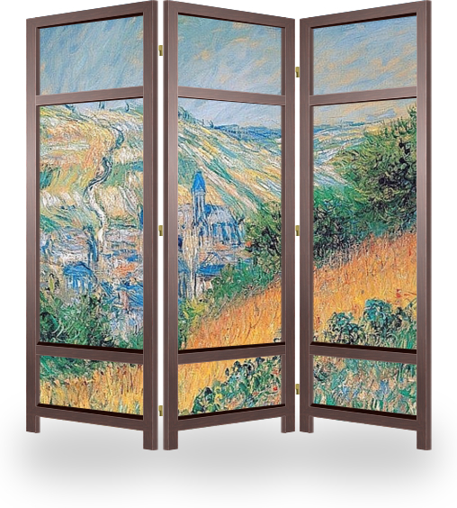 Ширма эконом отлично подойдет для временного размещения, рекламы, для отгораживания объектов интерьера и его дополнения. Лицевая сторона с изображением, обратная сторона открытый каркас