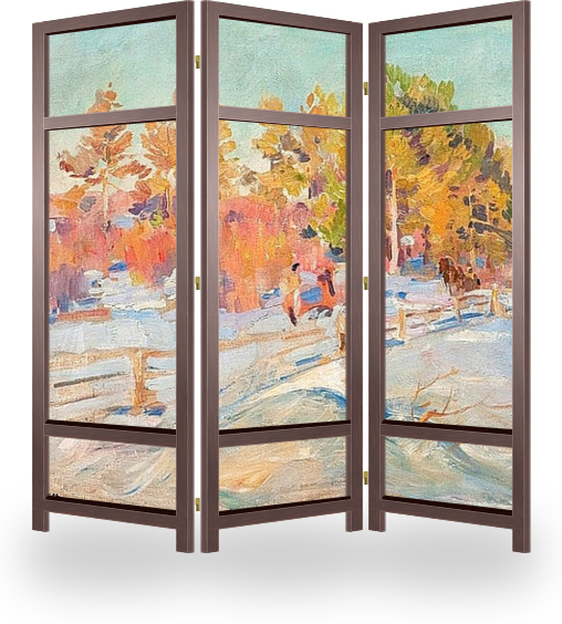 Ширма эконом отлично подойдет для временного размещения, рекламы, для отгораживания объектов интерьера и его дополнения. Лицевая сторона с изображением, обратная сторона открытый каркас