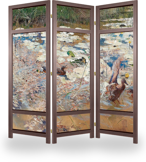 Ширма эконом отлично подойдет для временного размещения, рекламы, для отгораживания объектов интерьера и его дополнения. Лицевая сторона с изображением, обратная сторона открытый каркас