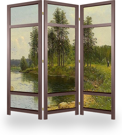 Ширма эконом отлично подойдет для временного размещения, рекламы, для отгораживания объектов интерьера и его дополнения. Лицевая сторона с изображением, обратная сторона открытый каркас