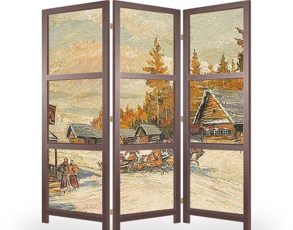 Ширма "Зимняя сцена с тройкой, зимой катание на санях"