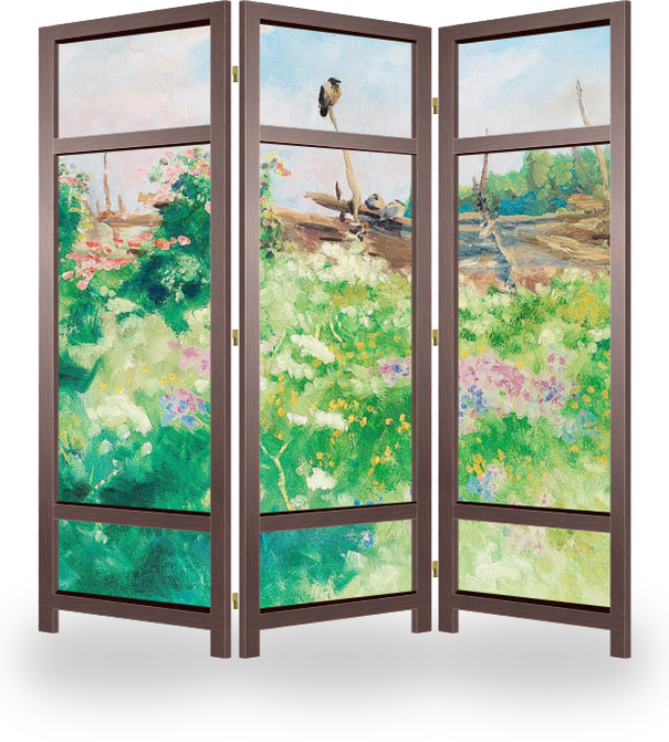Ширма эконом отлично подойдет для временного размещения, рекламы, для отгораживания объектов интерьера и его дополнения. Лицевая сторона с изображением, обратная сторона открытый каркас