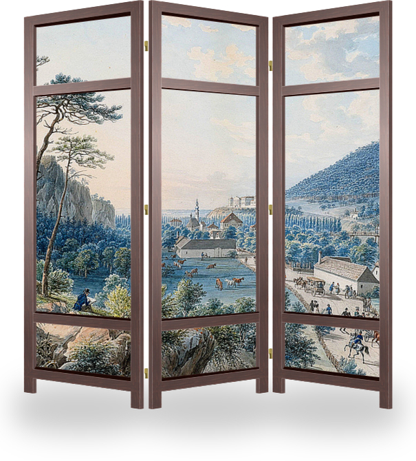 Ширма эконом отлично подойдет для временного размещения, рекламы, для отгораживания объектов интерьера и его дополнения. Лицевая сторона с изображением, обратная сторона открытый каркас