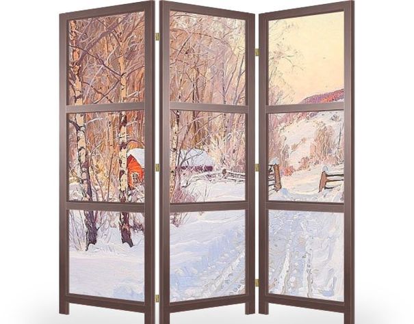Ширма "Зимний пейзаж с красным домом"