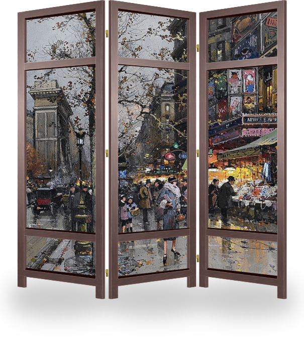 Ширма эконом отлично подойдет для временного размещения, рекламы, для отгораживания объектов интерьера и его дополнения. Лицевая сторона с изображением, обратная сторона открытый каркас