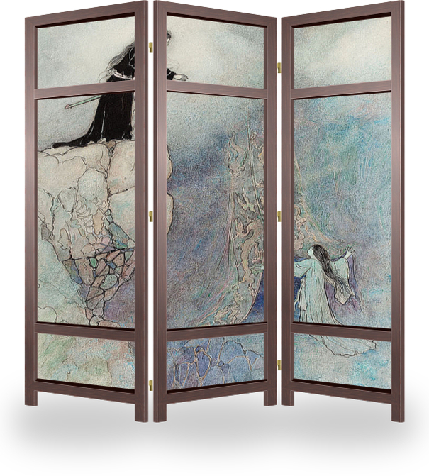 Ширма "Земля Йоми, Зеленая ива и другие книжные иллюстрации японских ск"