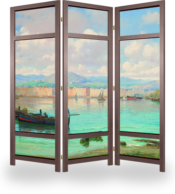 Ширма эконом отлично подойдет для временного размещения, рекламы, для отгораживания объектов интерьера и его дополнения. Лицевая сторона с изображением, обратная сторона открытый каркас