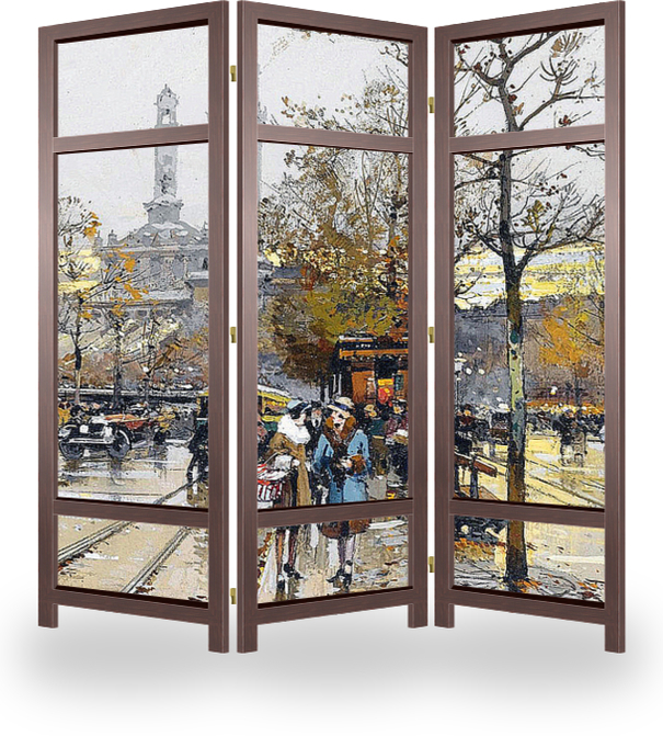 Ширма эконом отлично подойдет для временного размещения, рекламы, для отгораживания объектов интерьера и его дополнения. Лицевая сторона с изображением, обратная сторона открытый каркас