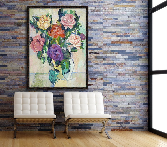Картина сначала типографским способом переносится на холст, получается "тусклый" отпечаток низкого разрешения , затем художник расписывает ее маслом. Роспись выполняется поверх контура изображения на хлопковом холсте. Холст заполняется маслом не менее чем на 80% поверхности , при этом техника Автора может не выдерживаться, допустимы отклонения в оттенках. Срок изготовления 6-7 рабочих дней . Роспись художником это наиболее оптимальное соотношение цена/качество.
