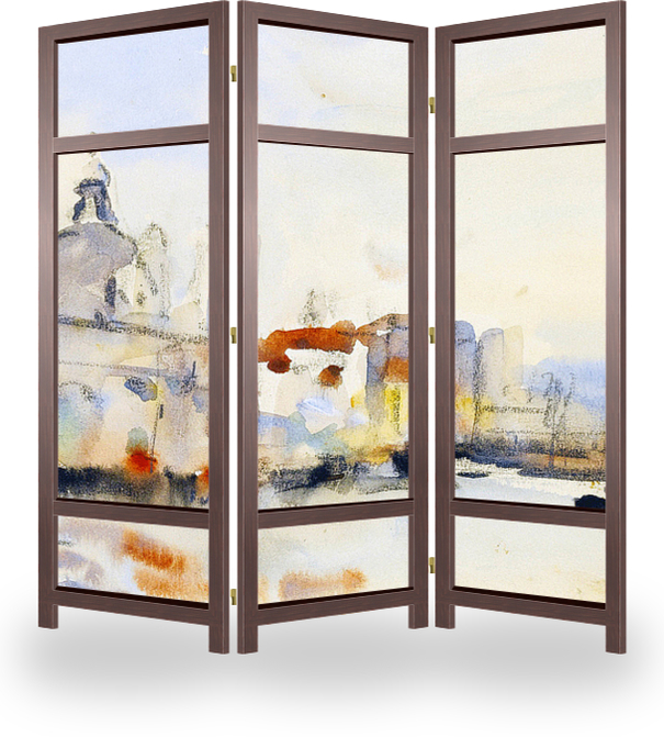 Ширма эконом отлично подойдет для временного размещения, рекламы, для отгораживания объектов интерьера и его дополнения. Лицевая сторона с изображением, обратная сторона открытый каркас