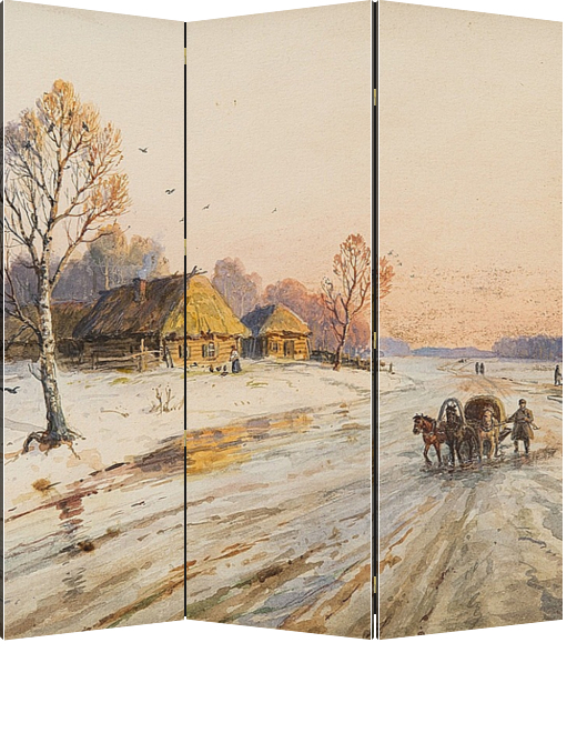 Ширма "Зимняя сцена с тройкой "