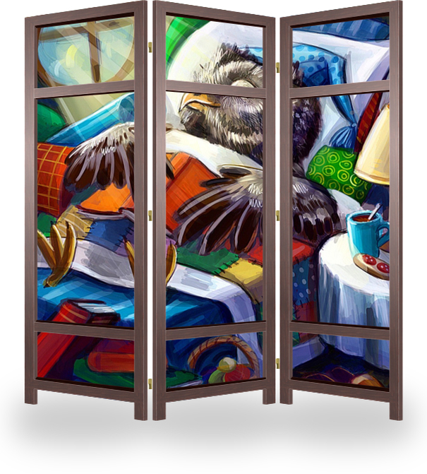 Ширма эконом отлично подойдет для временного размещения, рекламы, для отгораживания объектов интерьера и его дополнения. Лицевая сторона с изображением, обратная сторона открытый каркас