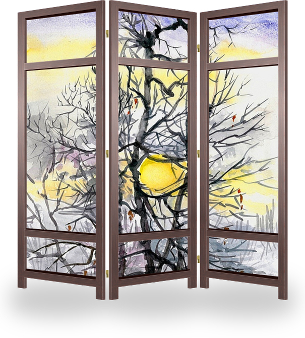Описание ширмы Холодное зимнее солнце