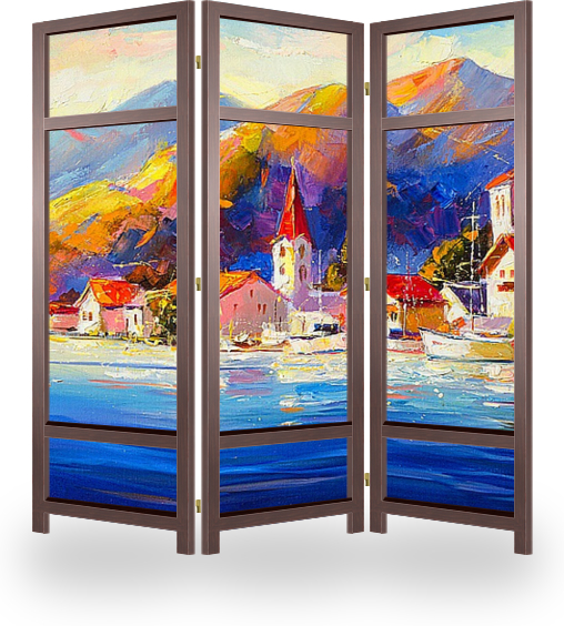 Описание ширмы Прекрасный пейзаж побережья станет яркой деталью любого интерьера.