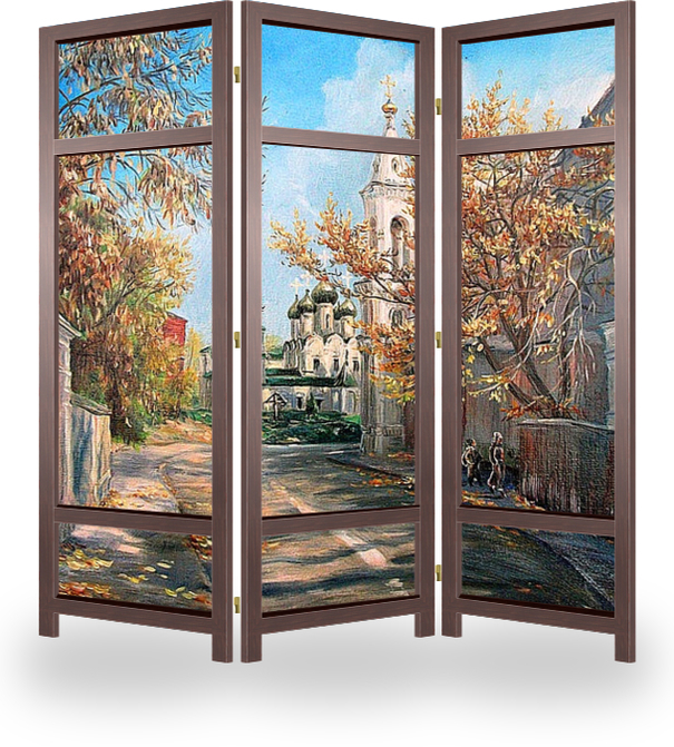 Ширма эконом отлично подойдет для временного размещения, рекламы, для отгораживания объектов интерьера и его дополнения. Лицевая сторона с изображением, обратная сторона открытый каркас