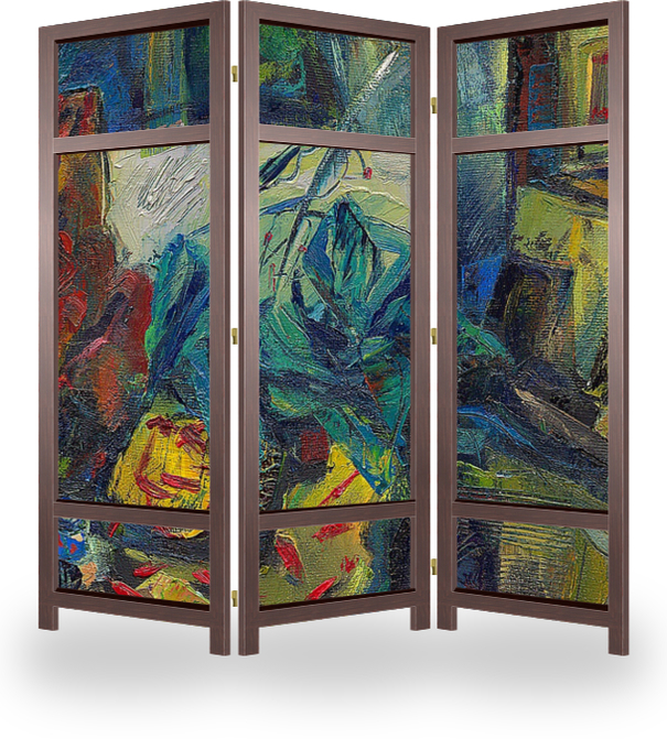 Описание ширмы Натюрморт с непонятными образами, будет удачно смотреться в современном интерьере кухни или столовой.
