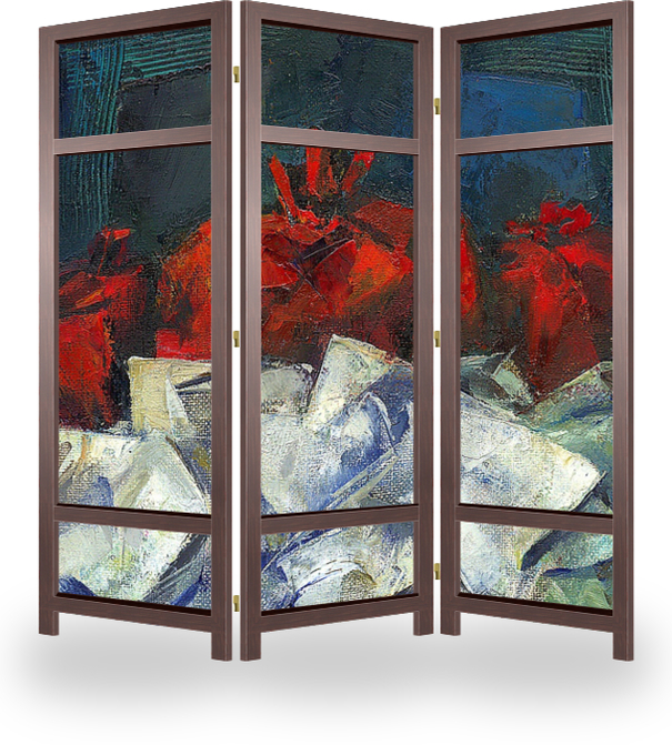 Ширма эконом отлично подойдет для временного размещения, рекламы, для отгораживания объектов интерьера и его дополнения. Лицевая сторона с изображением, обратная сторона открытый каркас
