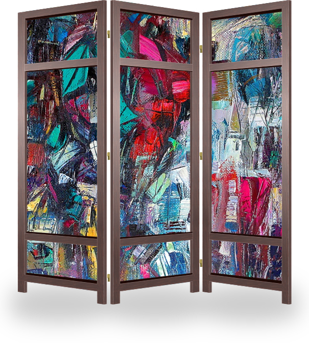 Описание ширмы Яркие пятна, сочные краски, картина оживит лаконичный интерьер.
