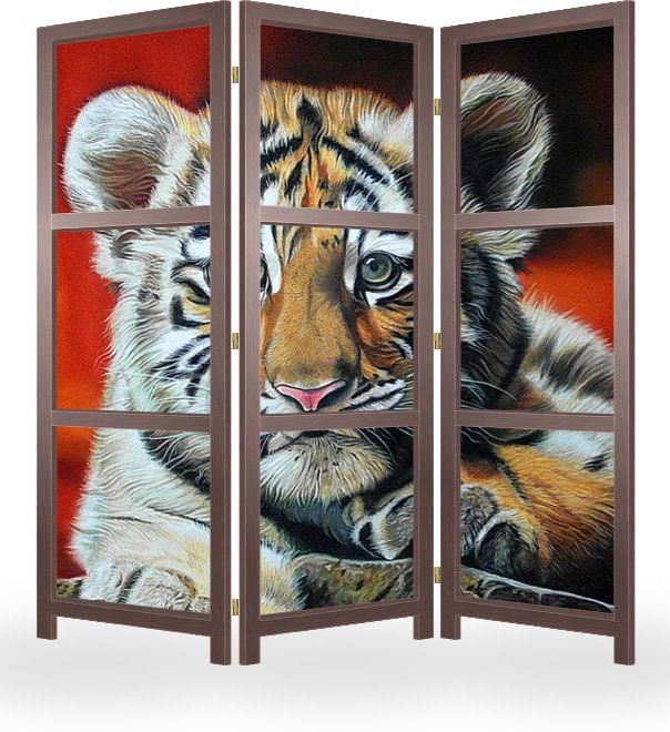 Описание ширмы Милый тигрёнок, картина для любителей животных, удачно впишется в интерьер детской.