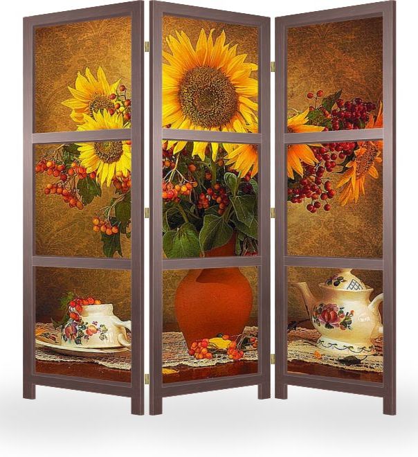 Описание ширмы Яркие подсолнухи оживят любой интерьер.