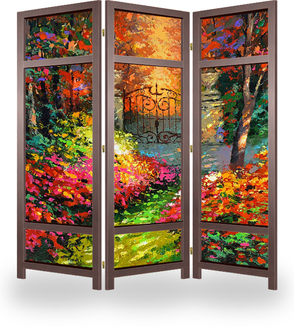 Ширма эконом отлично подойдет для временного размещения, рекламы, для отгораживания объектов интерьера и его дополнения. Лицевая сторона с изображением, обратная сторона открытый каркас