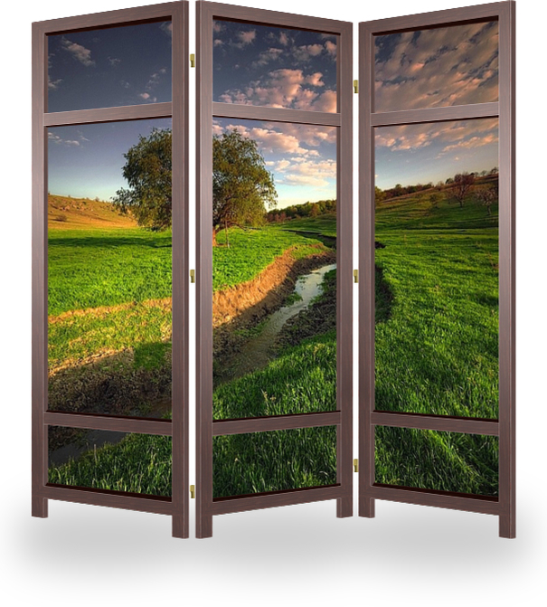 Ширма эконом отлично подойдет для временного размещения, рекламы, для отгораживания объектов интерьера и его дополнения. Лицевая сторона с изображением, обратная сторона открытый каркас