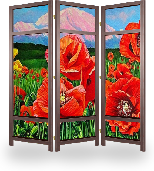 Ширма эконом отлично подойдет для временного размещения, рекламы, для отгораживания объектов интерьера и его дополнения. Лицевая сторона с изображением, обратная сторона открытый каркас